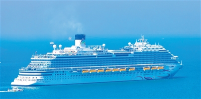 首艘国产大型邮轮“爱达·魔都号”驶向山东青岛邮轮母港。 杨雪梅摄(影像中国)