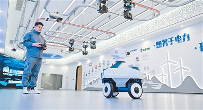 在河北雄安新区雄安科创中心中试基地,一家科技企业的工作人员在调试巡检机器人。 新华社记者 牟 宇摄