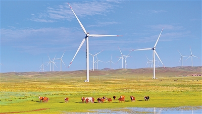 内蒙古自治区乌兰察布市,风力发电机将风能转化为绿色电能。 宋卫星摄(人民视觉)