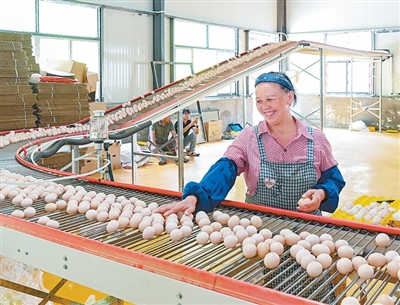 贵州省晴隆县,东西部协作项目资金支持的一家蛋鸡养殖场内,工人在分拣鸡蛋。 贾 智摄(影像中国)