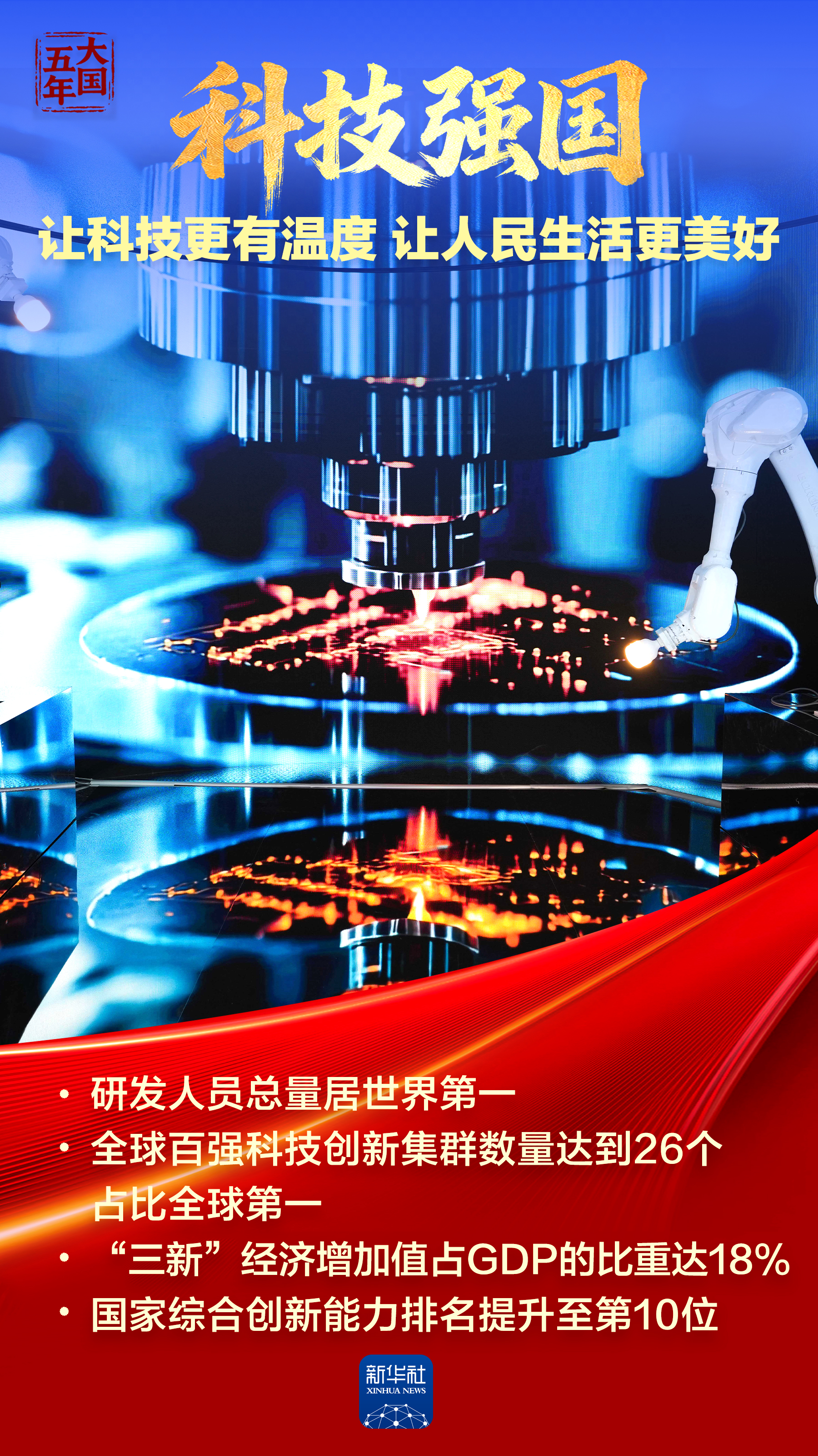 新进展新成就,浓墨重彩、举世瞩目;新突破新变革,令人鼓舞、催人奋进。让我们跟随这组海报,一起领略五年强国建设的辉煌篇章,倾听伟大祖国砥砺奋进的铿锵脚步。