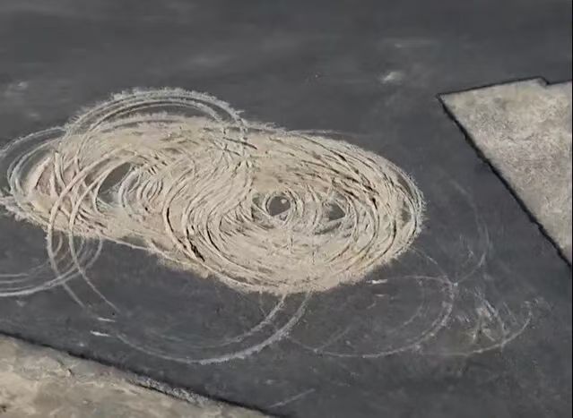 然而,近段时间以来,一些人穿越戈壁荒漠,来到这里玩漂移,留下了一个个刺眼的痕迹。尤其是在“人民”二字中间,漂移痕迹尤为严重,从空中俯瞰令人痛心。许多网友直言,这不仅是对戈壁景观的破坏,更是对历史和先辈的亵渎。