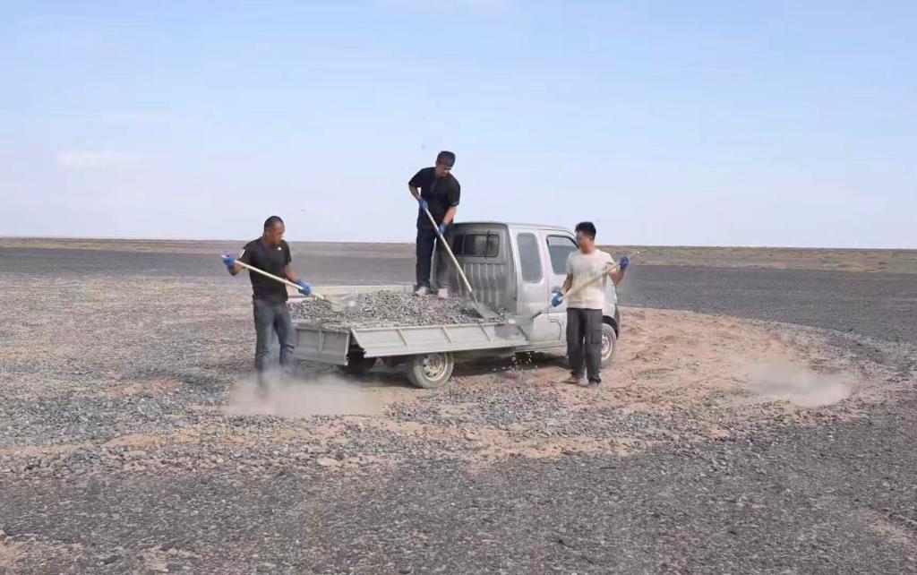 “看到车轮碾过标语那一刻,就像碾在历史的脊梁上。”网络博主陆遥得知标语被破坏后,主动驱车两千多公里,经历六天抵达哈密。他和朋友们拉运20吨砂石,才终于修复这些“疤痕”。