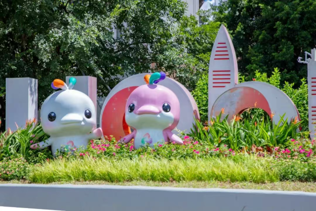 深圳滨河路-宝安立交,“喜洋洋”和“乐融融”‌悄然伫立,为城市街角添一抹活力亮色。图源:深圳发布