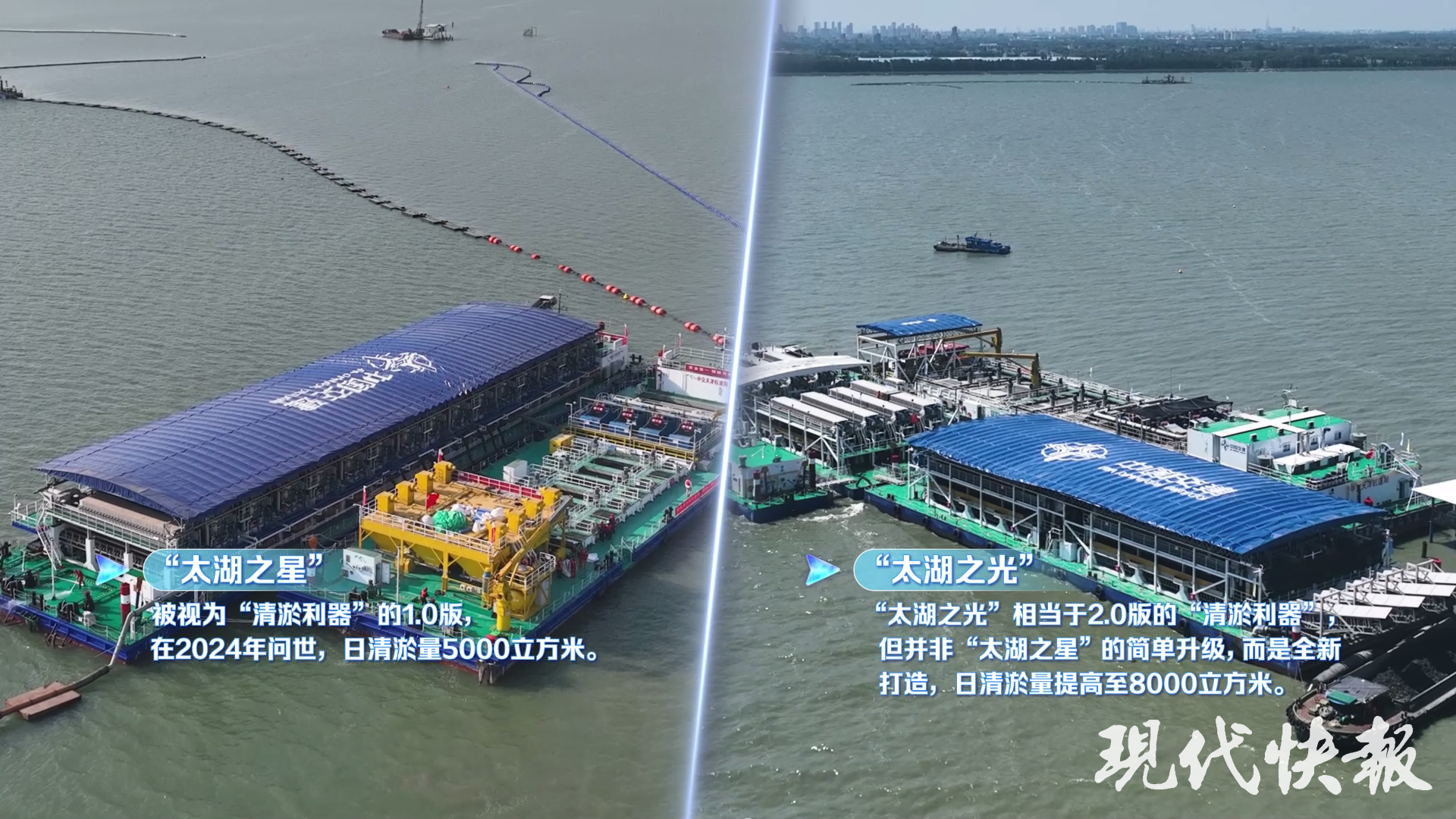 早于“太湖之光”打造的“太湖之星”,被视为“清淤利器”的1.0版,在2024年问世,日清淤量5000立方米。如今,“太湖之星”和“太湖之光”分别在太湖的无锡市区段、宜兴段水域作业,被称为太湖清淤“星光”CP。这些年,王冰一路见证国产清淤装备从跟跑者成为领跑者。王冰介绍,传统的清淤船在挖出淤泥后,要运到岸边露天堆放,自然脱水风干。但这样占地多、周期长、运输难、花费也比较高,还容易影响周边的生态环境。