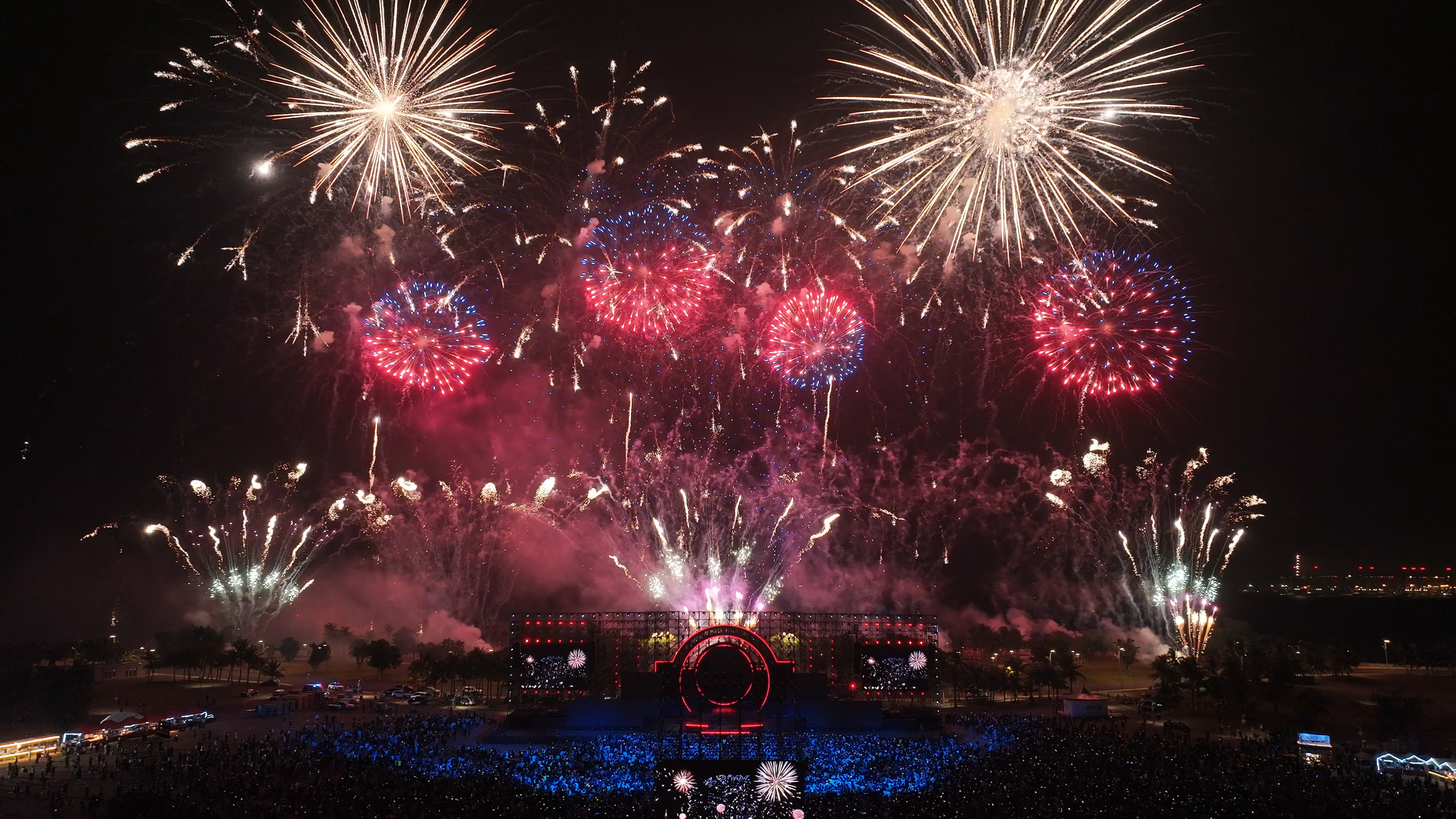 跨年夜,数万游客在海花岛旅游度假区看烟花表演。(受访者供图)