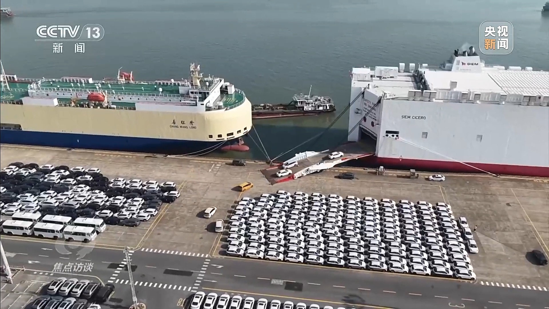 广州港南沙汽车码头有限公司总经理助理 陆春荣:打造了七船同靠并行作业的高效级运营模式,我们通过科学船舶调度,还有资源整合,实现了单船超过4000台汽车的装卸作业,在24小时内完成常态化高效标准。