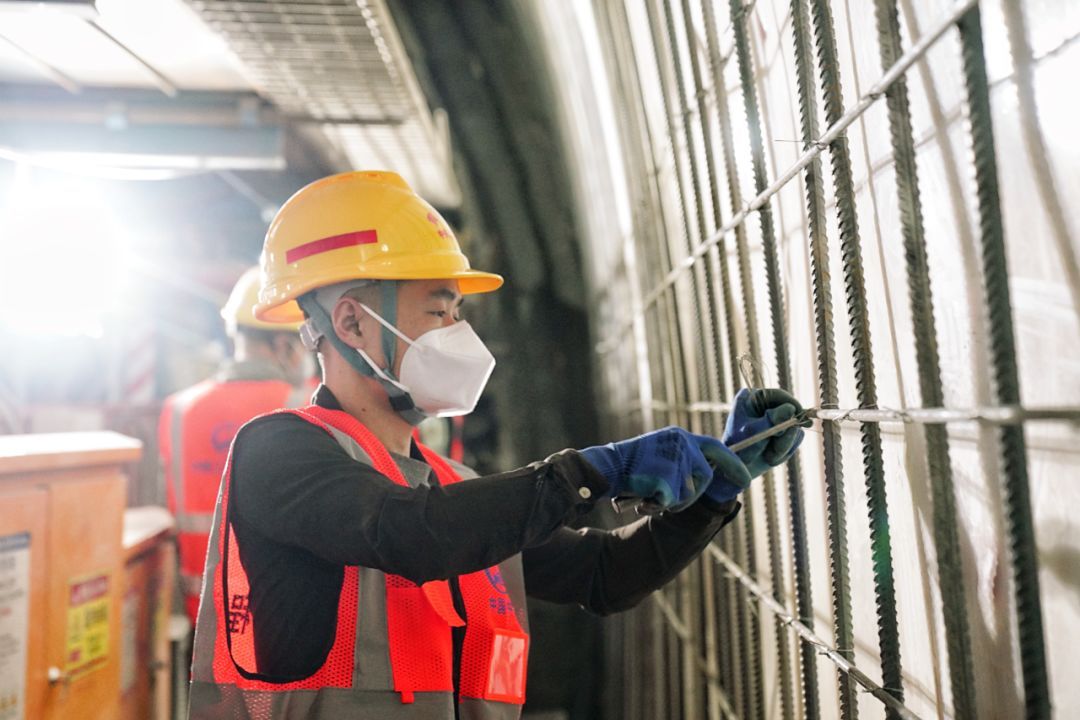 寒冬时节,山间气温仅有个位数,隧道深处却一片火热。开挖、防水、扎钢筋、浇筑……各施工组有序衔接,环环相扣。