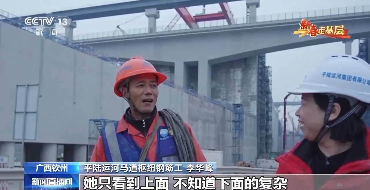 平陆运河马道枢纽钢筋工 李华峰:这是我们干的工程,这是国家世纪工程是吧。等开通之后,过两年肯定过来看一下。带家人坐火车过来看一下。我老婆只看到上面,不知道下面的复杂。