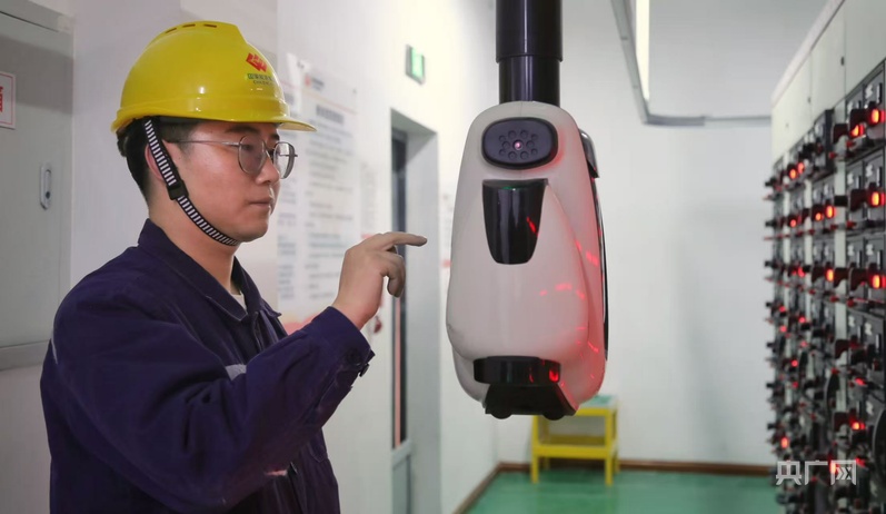 马小强通过操控机器人完成对光伏板组的日常检测(央广网记者  贾海元  摄)