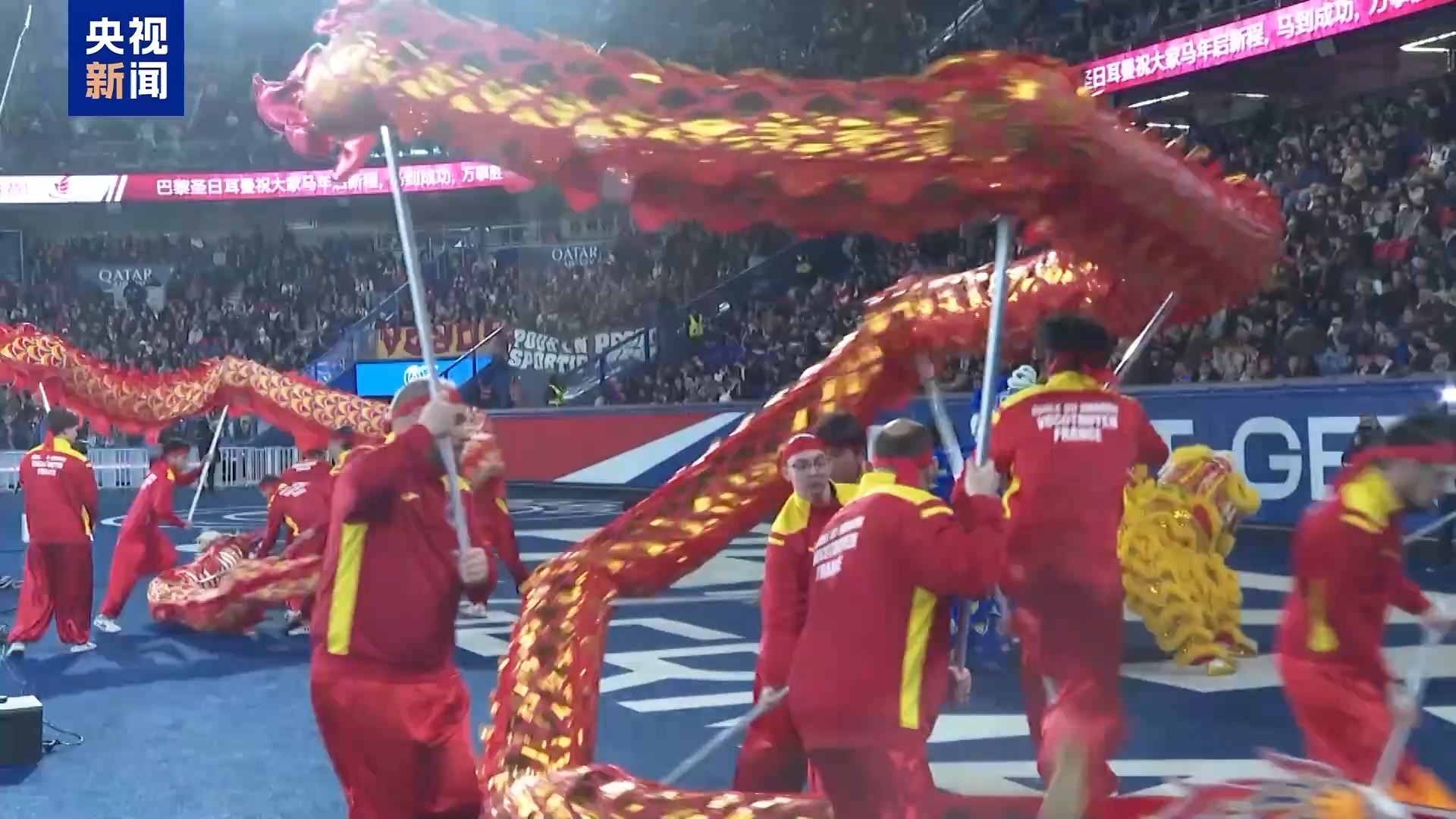 在当地时间21日晚进行的一场法甲联赛中,为庆祝中国春节,巴黎圣日耳曼队身披马年特别版球衣登场。当晚,王子公园球场被浓浓的中国年味装点一新。