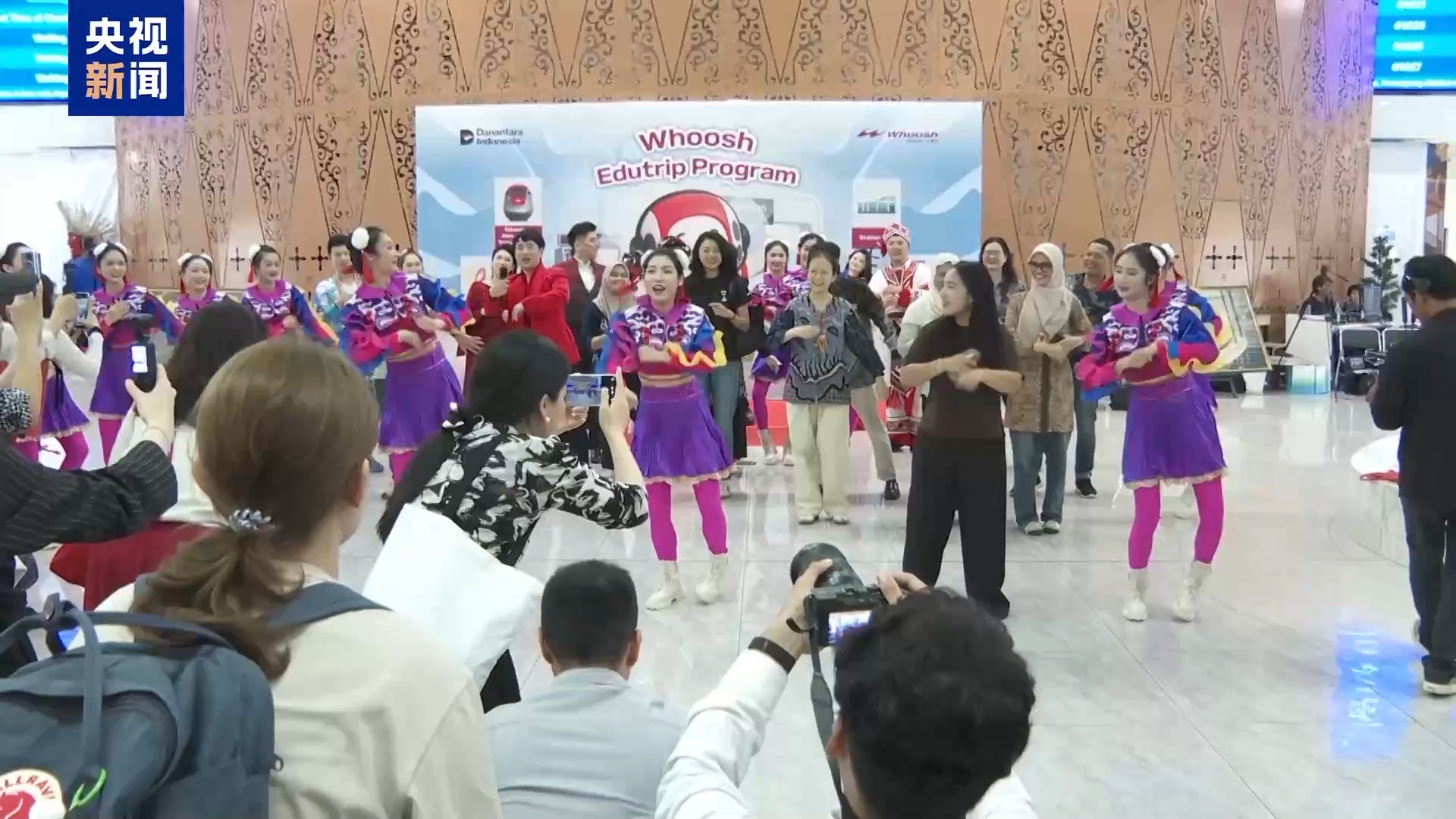 近日,在印度尼西亚雅加达雅万高铁哈利姆车站,一场以新春祝福为主题的“马上有福”城市快闪活动举行,吸引不少乘客驻足观看并热情互动。