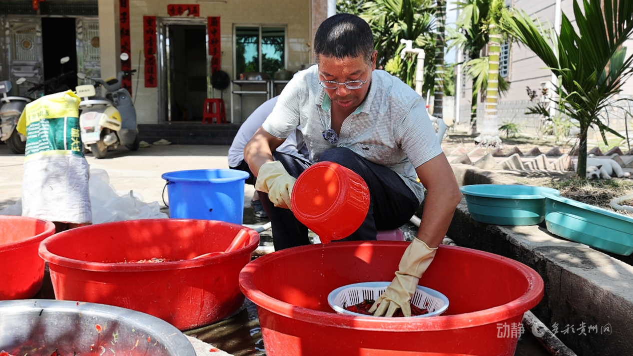 贵州省农科院辣椒研究所“黔辣”育种团队成员刘崇政正在分离采收的辣椒种