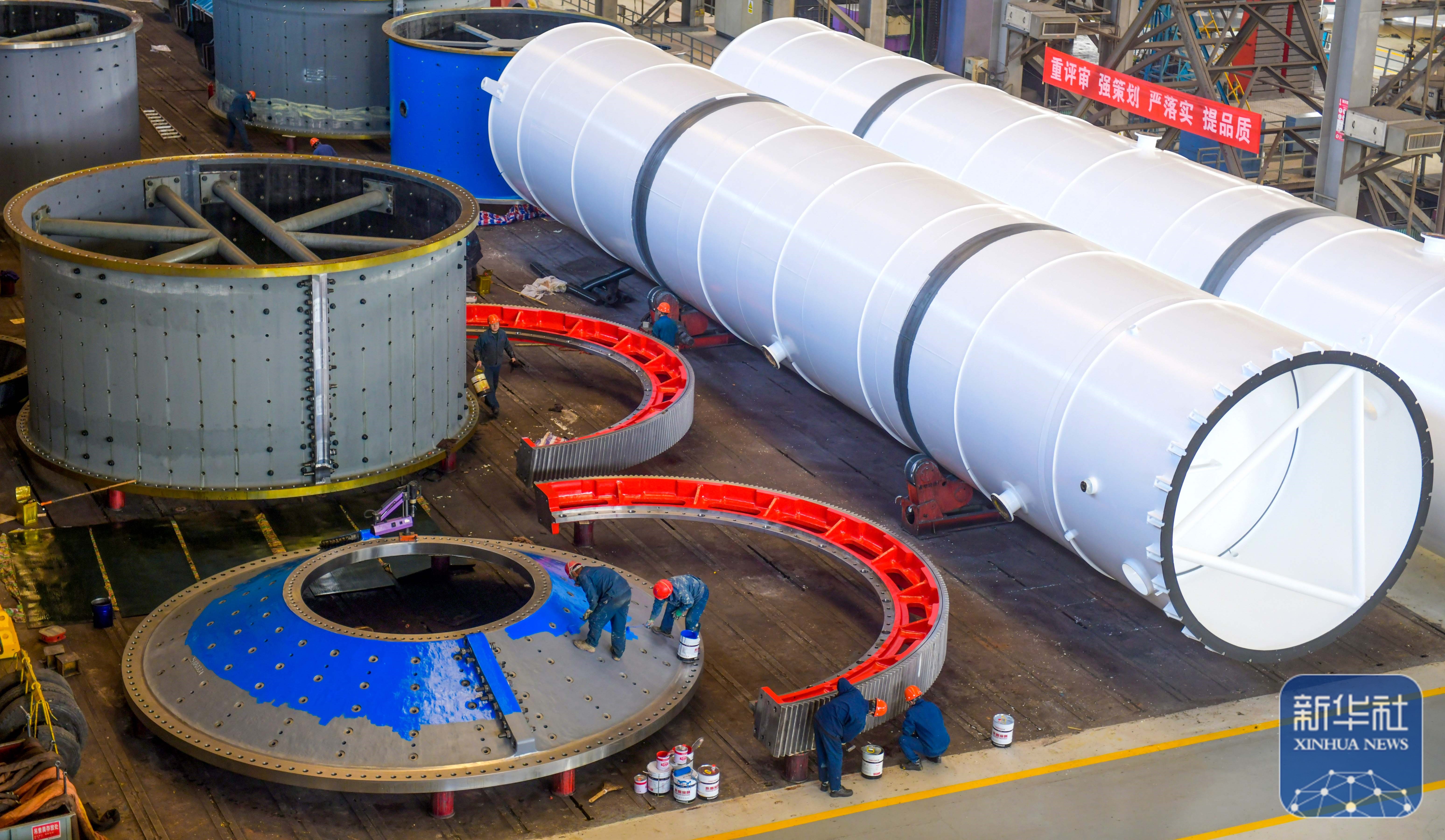↑ 2月24日,在河南省洛阳市中信重工生产车间,工人在加工生产订单产品。新华社发(张怡熙摄)