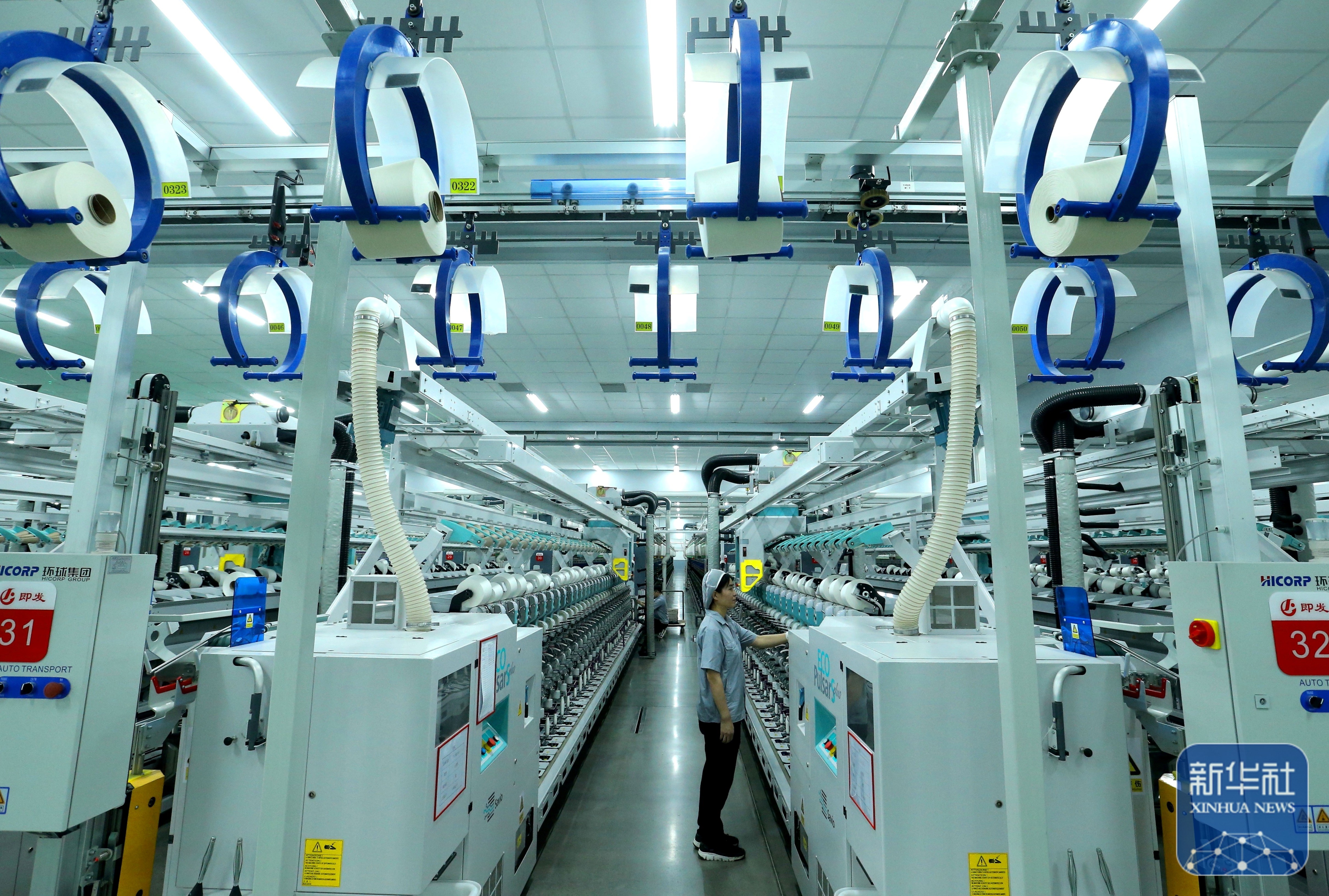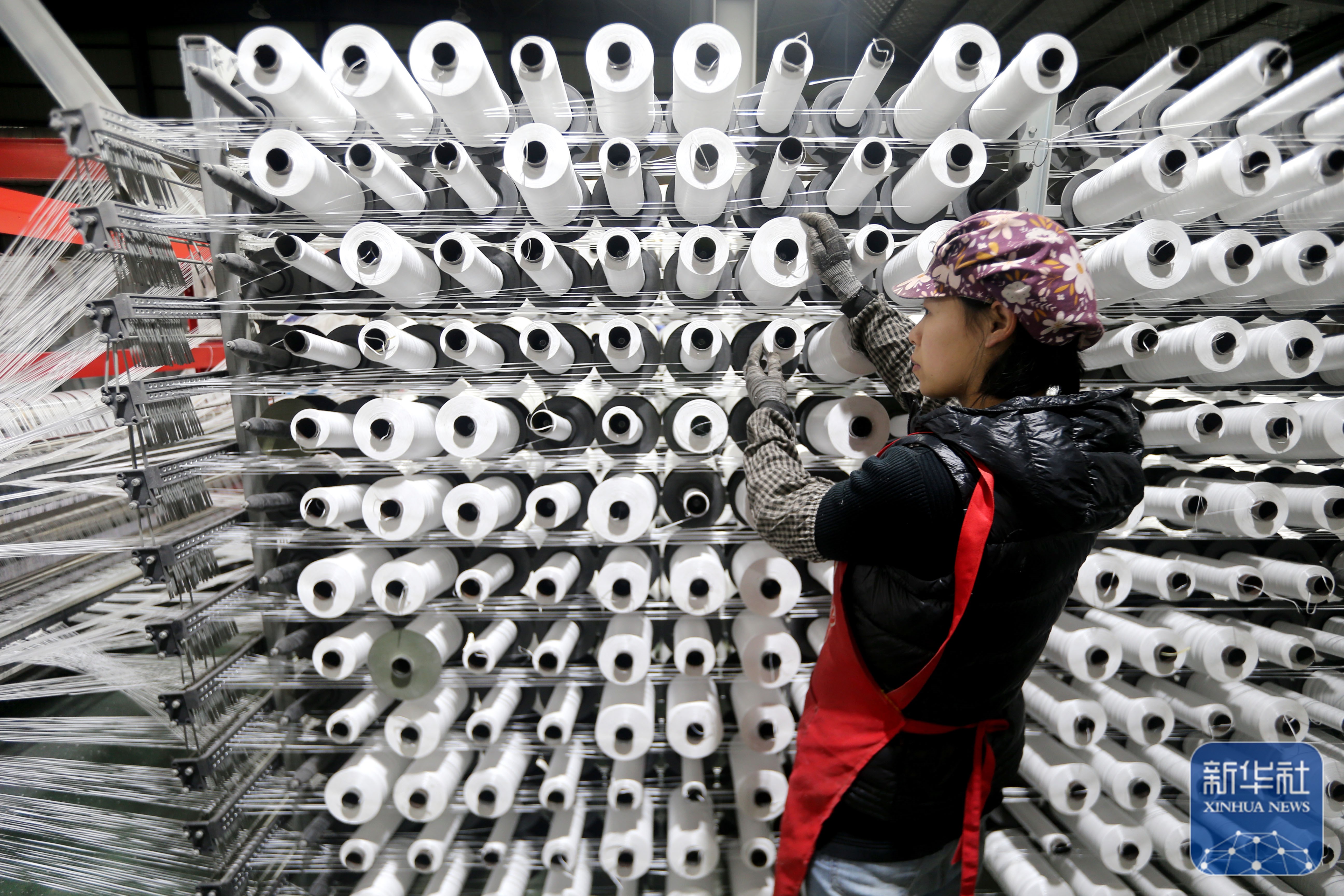 ↑ 2月24日,山东省青岛市即墨区即发纺织科技有限公司的工人在生产高端纤维产品。新华社发(梁孝鹏摄)