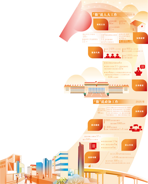 2025年,全国人大代表提出的269件议案和9160件建议已全部审议办理完毕并答复代表;全国政协委员提交的5900多件提案,立案5000多件,部分意见建议被吸纳到有关政策文件中。全过程人民民主真正看得见、摸得着。
