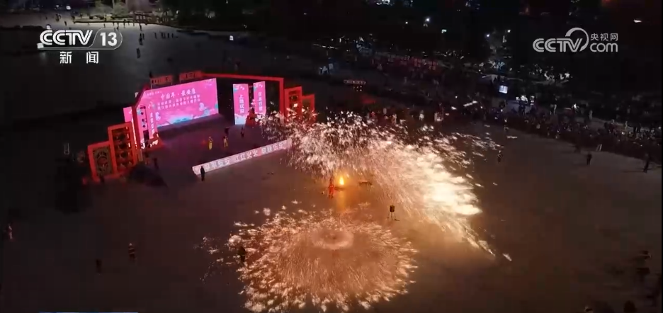 夜幕降临,极具陕南特色的烧火龙表演震撼登场。舞龙者迎着飞溅的焰火辗转腾挪、穿梭起舞。此外,打铁花、火壶等表演也轮番亮相,让市民和游客在绚烂光影中感受传统民俗的别样魅力。
