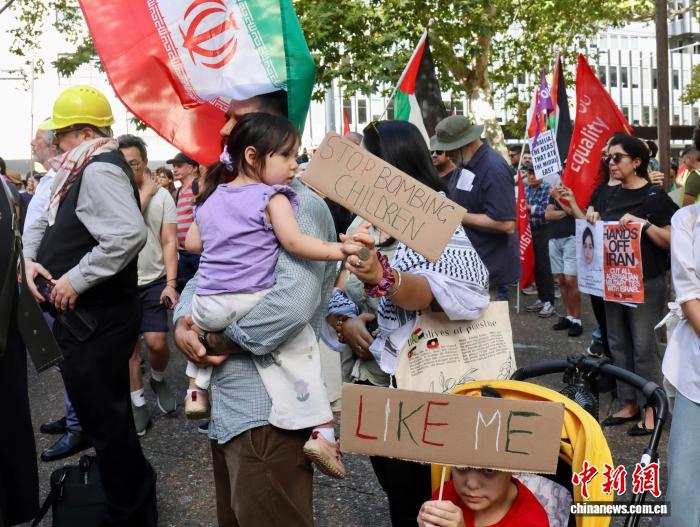 中新社悉尼3月14日电 (记者 薄雯雯)澳大利亚民众14日在悉尼市政厅外举行集会,抗议美国和以色列对伊朗发动军事打击。