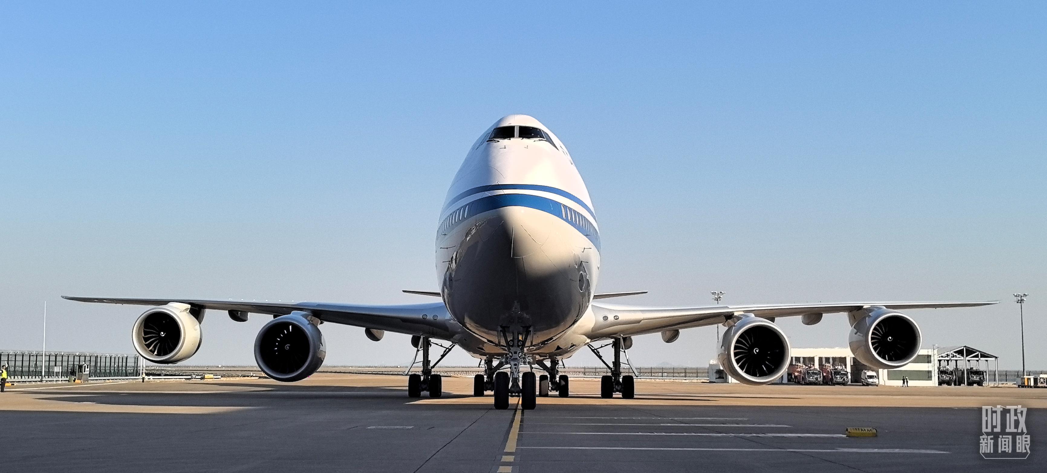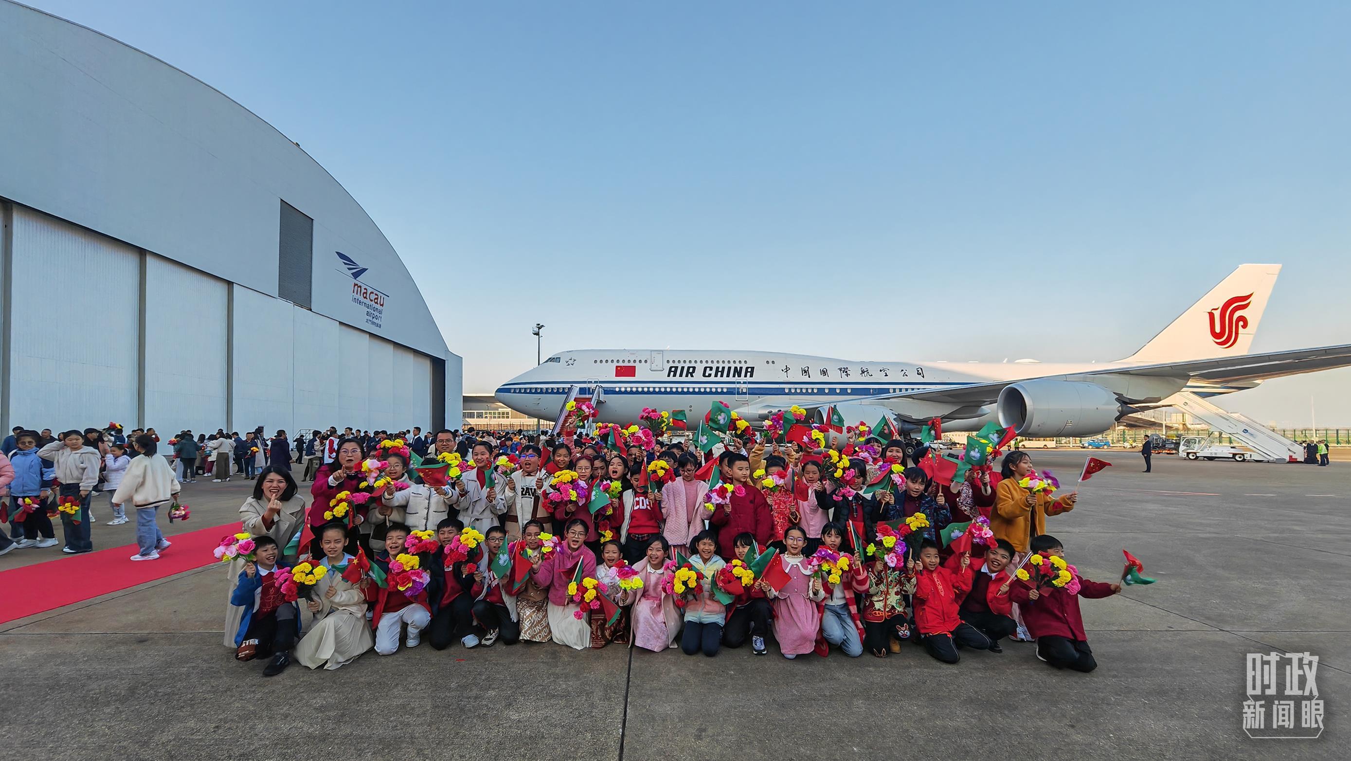△习主席专机抵达澳门国际机场。(总台央视记者王子杭拍摄)