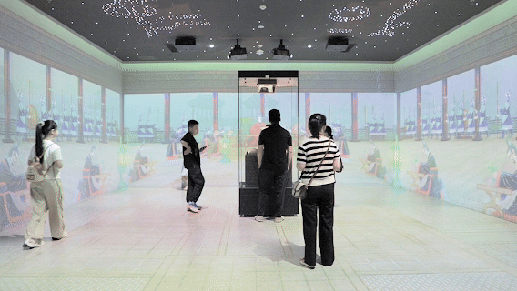 改造后的数字化何尊展厅吸引参观者沉浸式观看(央广网记者 侯凯奇 摄)