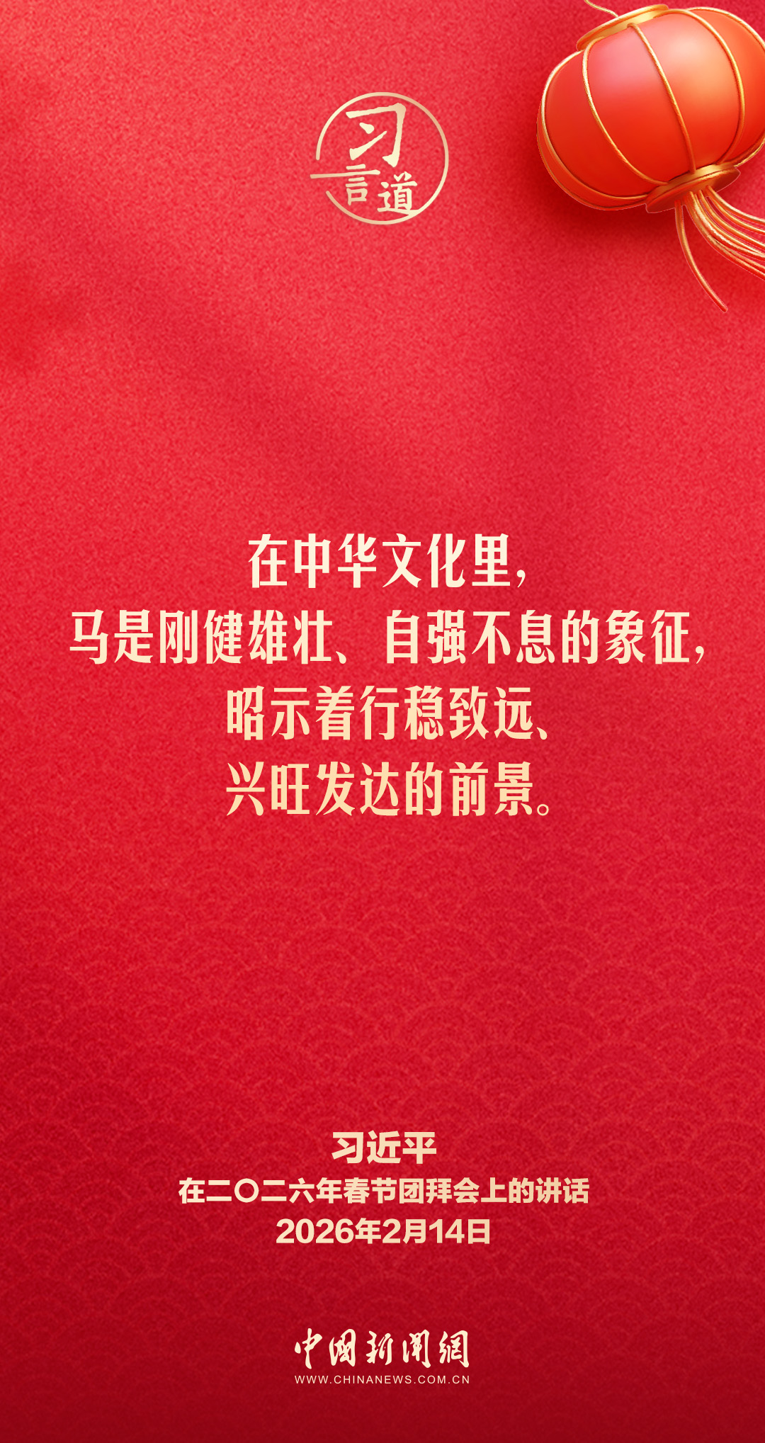 2月14日,中共中央、国务院在人民大会堂举行2026年春节团拜会。中共中央总书记、国家主席、中央军委主席习近平发表讲话,代表党中央和国务院,向全国各族人民,向香港特别行政区同胞、澳门特别行政区同胞、台湾同胞和海外侨胞拜年。他指出——