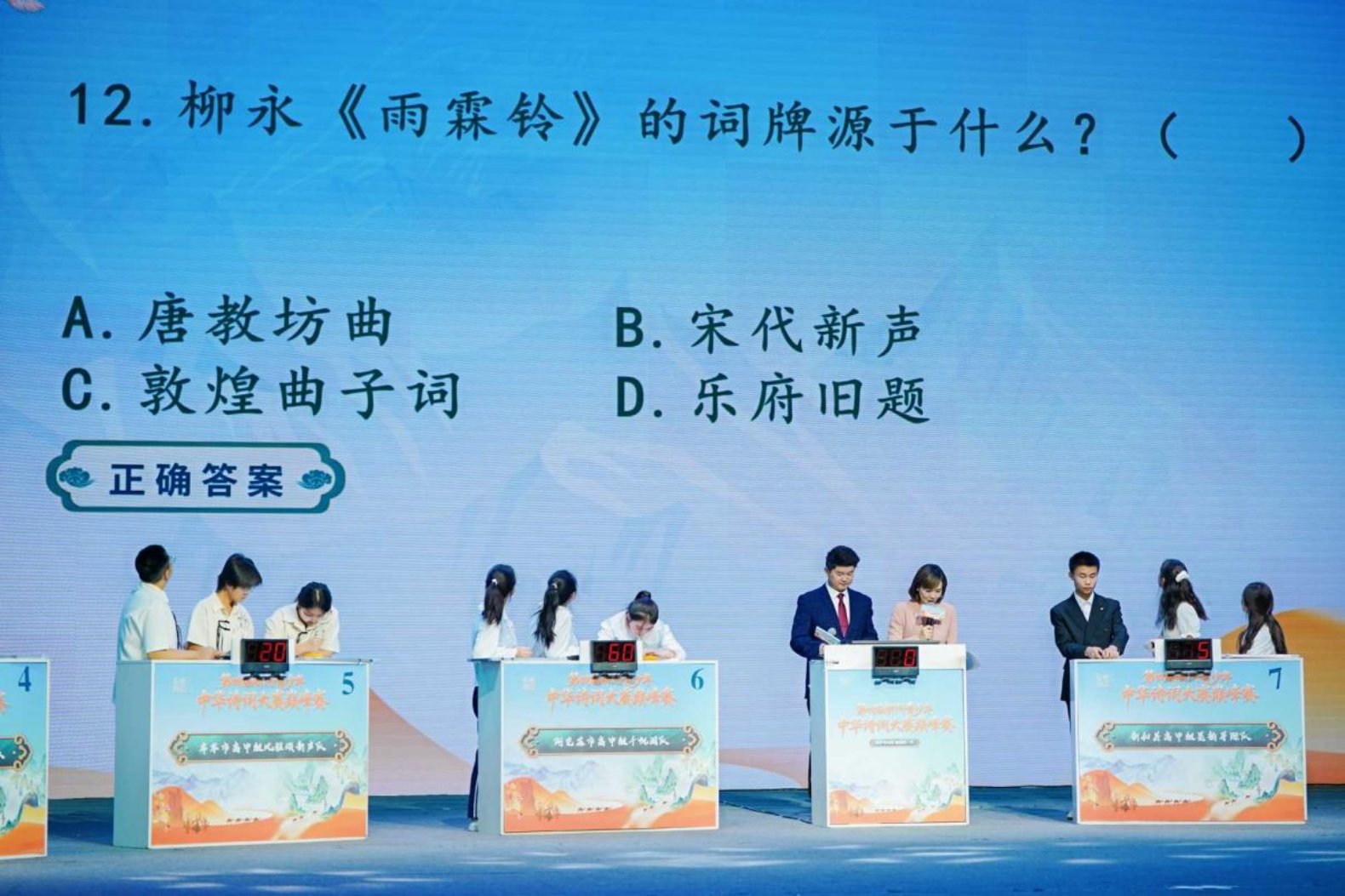 文化是民族的血脉,是凝聚人心的桥梁纽带。在浙江省援疆指挥部及有关部门的支持下,自2022年以来,浙阿青少年中华诗词大赛已连续举办四届,成为文化润疆的生动载体。浙江援疆教师王红梅向中国少年报·未来网记者介绍,自今年8月初启动以来,本届赛事面向阿克苏地区各县(市)以及新疆生产建设兵团第一师阿拉尔市各中小学选拔,10多万名学生参与了海选、晋级赛比拼,最终有32支代表队脱颖而出,登上巅峰赛的舞台。比赛设置了必答题、抢答题、创意知识题和飞花令等环节,还创意性地引入人工智能生成的古诗画供选手竞猜,将传统文化与现代科技巧妙融合。