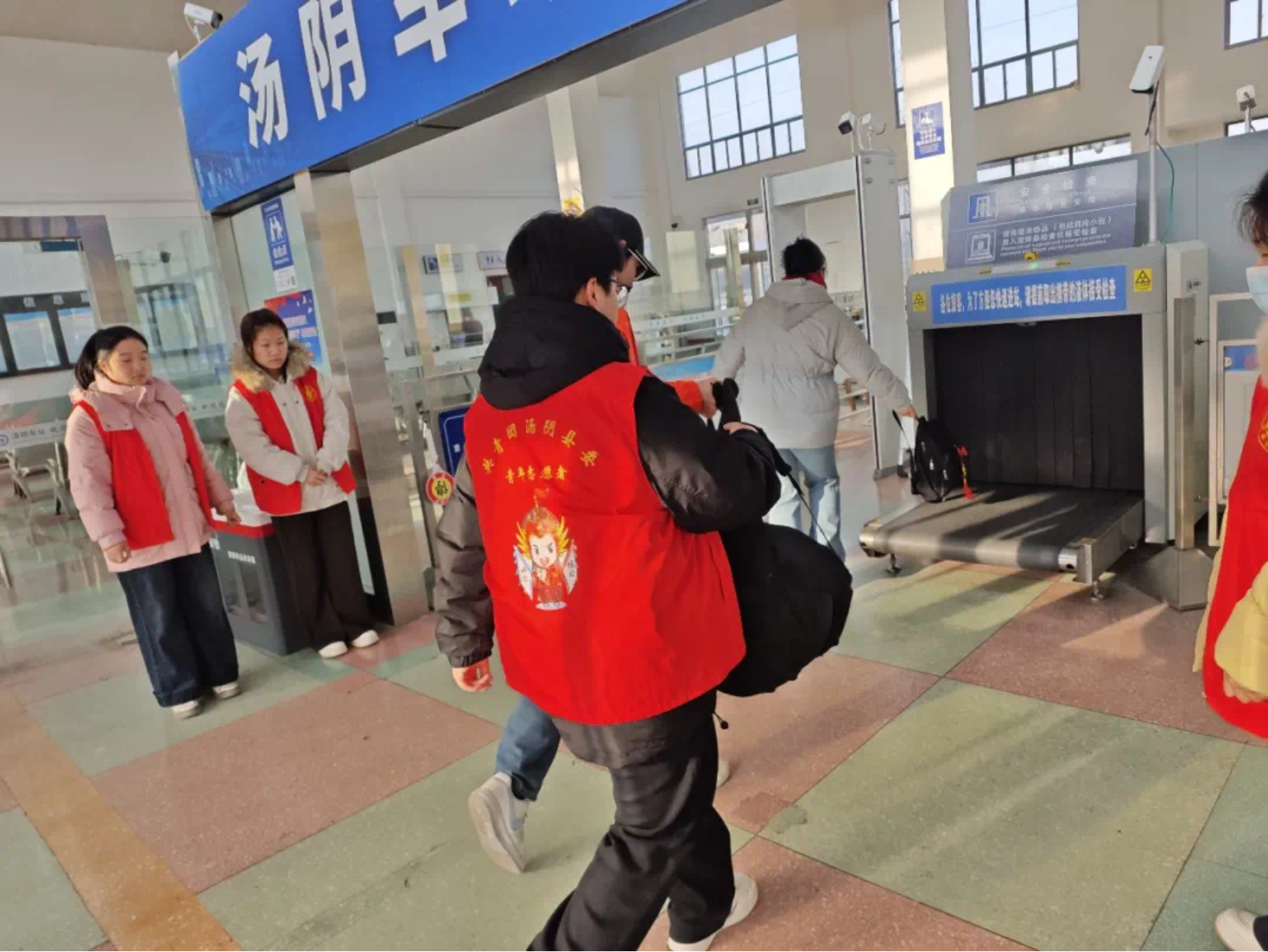 未来网北京2月9日电(记者 王军伟)春运大幕拉开,返乡归途暖意融融。为切实保障春运期间旅客出行安全顺畅,为返乡游子营造温馨便捷的出行环境,共青团汤阴县委提前谋划、精心组织,发动汤阴县大学生联盟志愿者开展“青春志愿行,温暖回家路”春运暖冬行动志愿服务活动,以青春力量为旅客平安、便捷、温馨返乡保驾护航,让一抹抹“志愿红”成为春运路上最动人的底色。