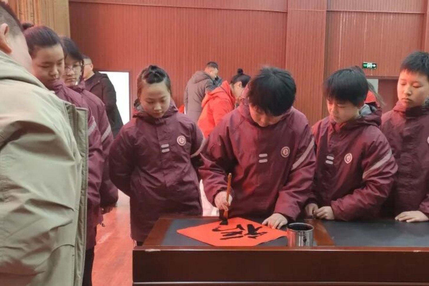 活动中,汝师附小的学生们自信从容、神情专注,铺纸、蘸墨、运笔一气呵成。笔尖起落间,一个个饱满圆润的“福”字、一幅幅寓意吉祥的春联跃然纸上,或端庄大气,或灵动飘逸,每一笔都承载着少年们对新春的期盼,对传统文化的热爱与敬畏。这背后,离不开学校“五育并举”育人体系的扎实推进,更得益于校园书法社团课程的悉心培育。