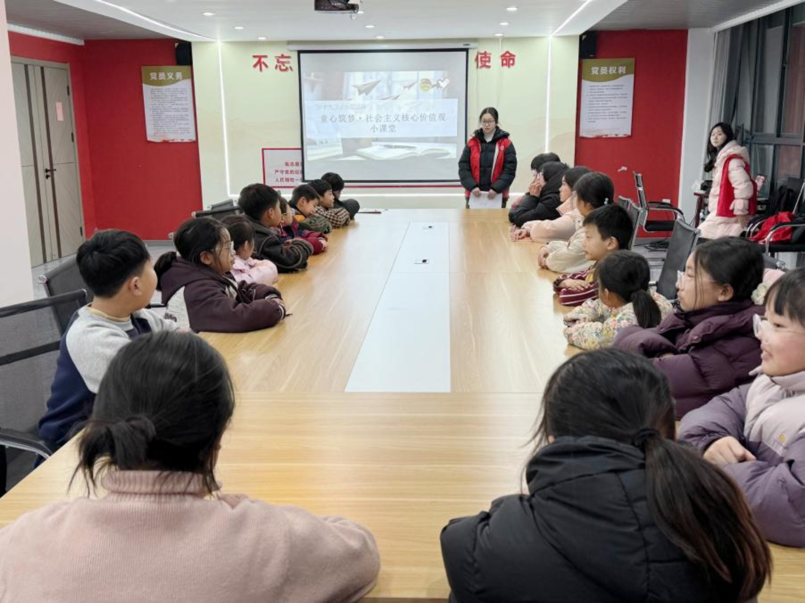 在河南省安阳市汤阴县,共青团汤阴县委在城关镇新时代文明实践站、韩庄镇政泰苑社区党群服务中心两个点位,同步启动寒假爱心托管班,以双阵地联动实现服务精准覆盖。其中,城关镇新时代文明实践站聚焦思想引领,开设“童心筑梦·社会主义核心价值观”小课堂,青年志愿者通过趣味问答、故事分享等生动形式,引导孩子们深刻理解核心价值观的丰富内涵,厚植爱党爱国情怀。