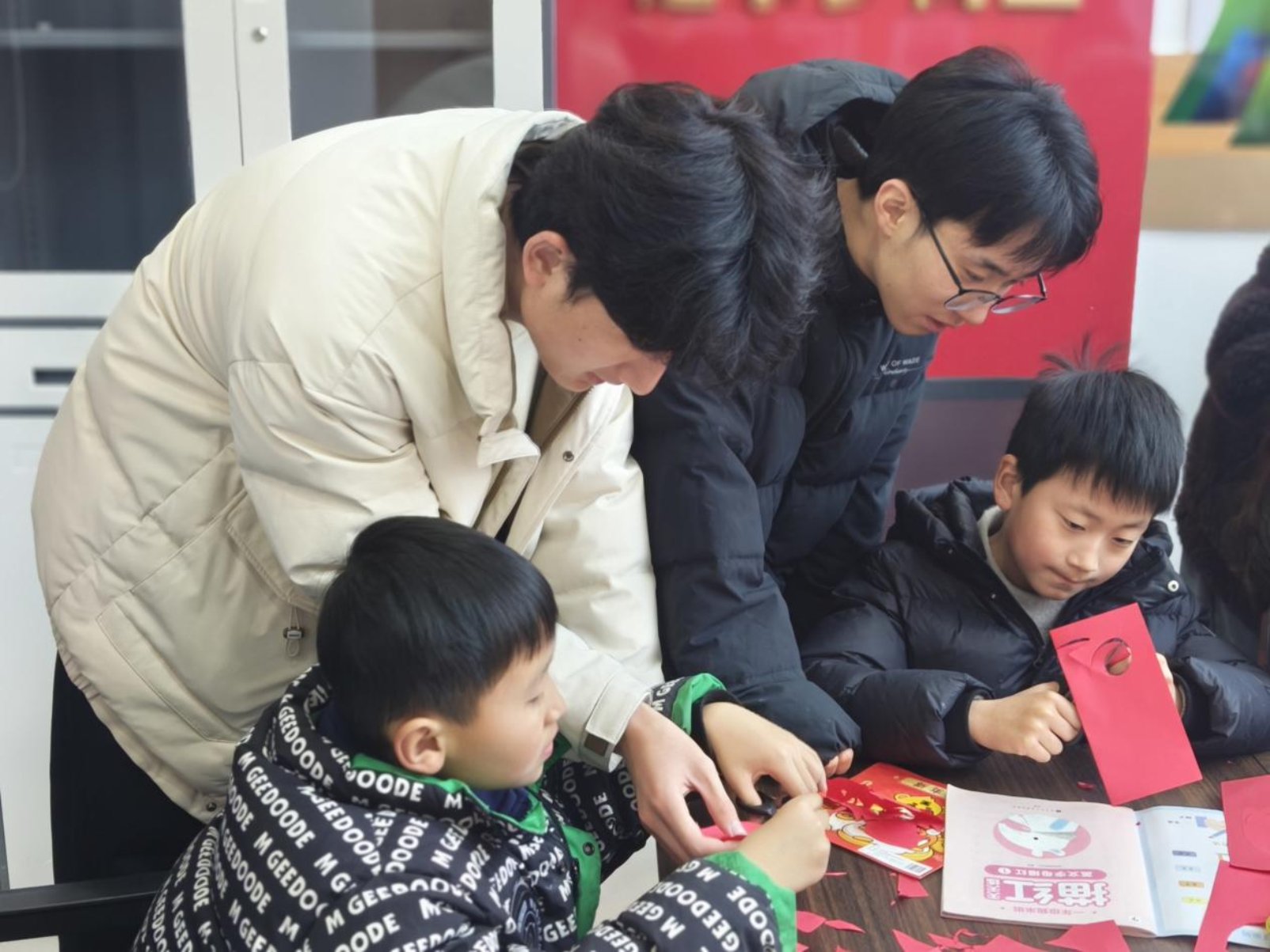 李军的父母常年在外务工,寒假期间他跟着奶奶生活,虽有家人陪伴,但面临着作业无人辅导、课余生活单调等难题。来到家门口的“青颍学堂”后,在志愿者的耐心陪伴下,李军不仅作业完成质量大幅提升,还主动担任手工小组组长,教其他同学剪窗花。