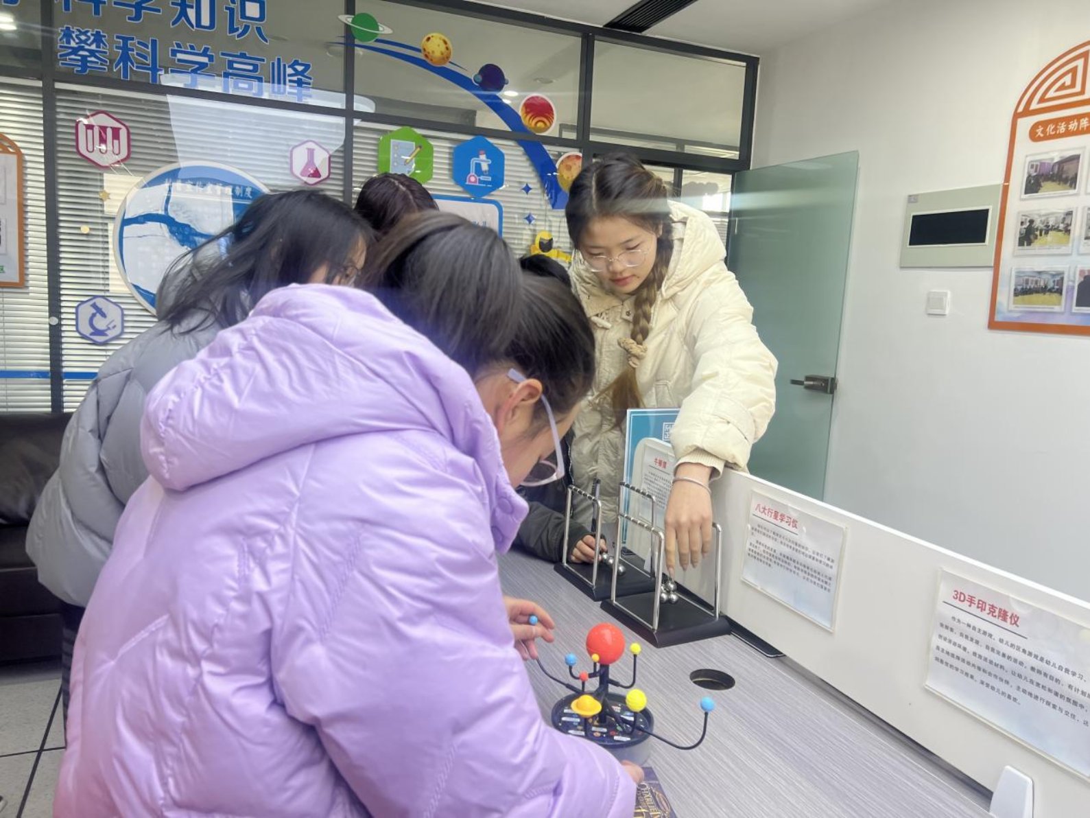 看着玻璃瓶里冒出的气泡,孩子们的眼睛瞪得圆圆的,争先恐后地想要动手尝试。在这个爱心托管点位,科学小实验是最受孩子们欢迎的课程,志愿者们结合孩子的年龄特点,设计了“小苏打火山”“静电实验”等趣味实验,让孩子们在动手操作中感受科学的魅力。