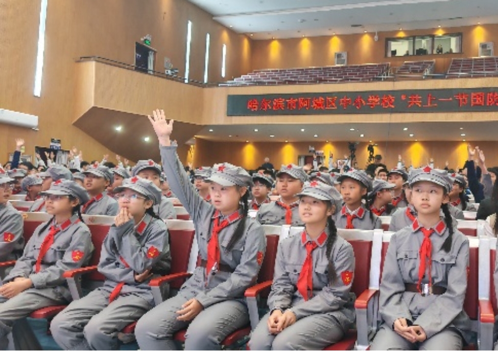 4月20日,活动走进阿城区少年宫剧场,解放小学、和平小学等7所学校约1000名学生在现场聆听。申行运大队长结合自身经历,从中国载人航天发展历程、航天员严苛选拔训练、太空生活趣事等方面,生动诠释“特别能吃苦、特别能战斗、特别能攻关、特别能奉献”的载人航天精神,点燃了学子探索未知、逐梦星辰的热情。