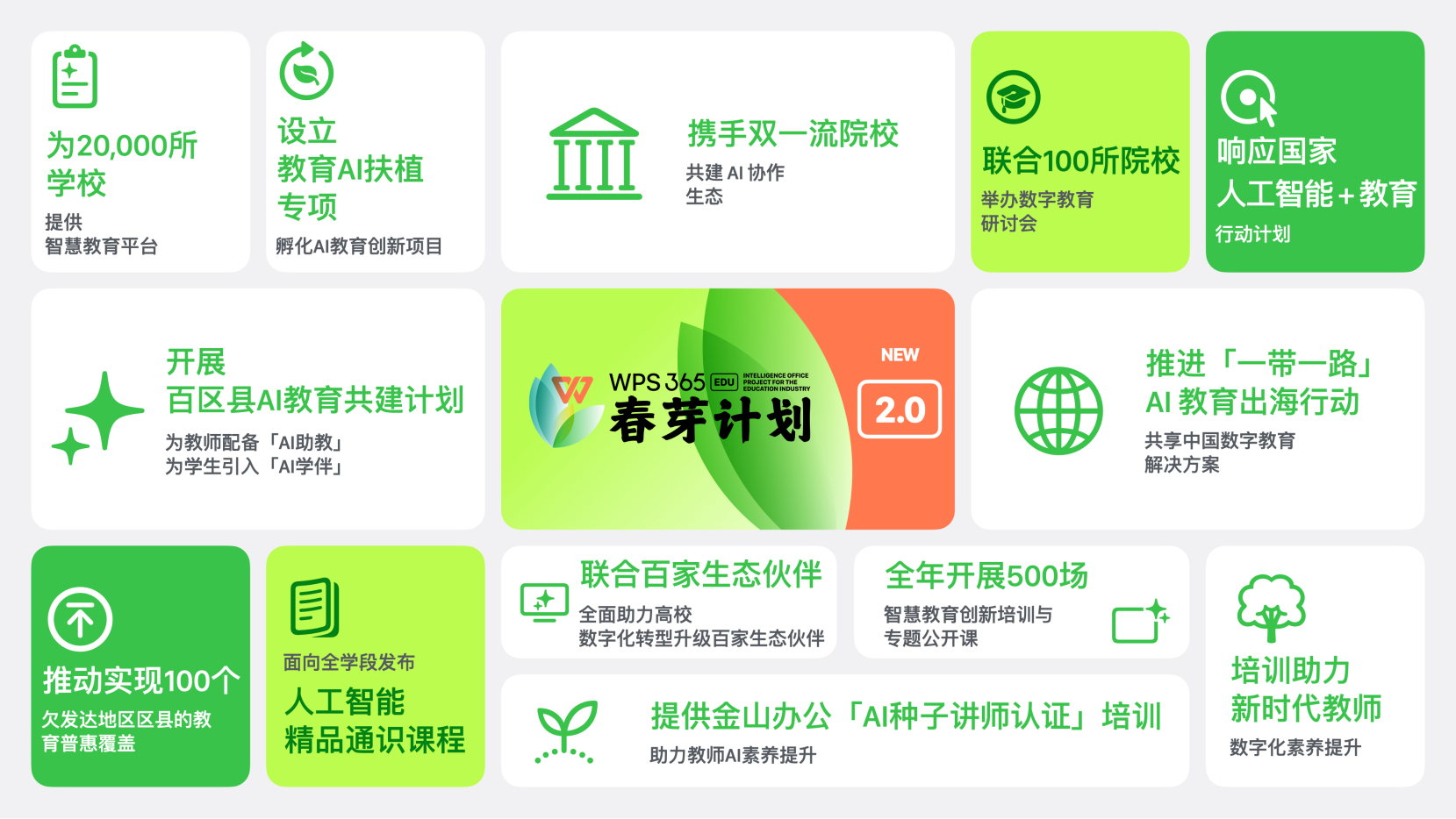 “‘春芽计划’1.0验证了校园场景的可行性,2.0的核心是把这套能力复制到资源更紧缺的县域中小学。”金山办公教育事业部总经理吴增谂表示,“为县域教师提供拿来就能用的工具。”