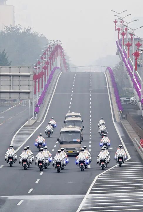 载着英雄的礼宾车队从住地出发,在礼宾摩托车队护卫下,驶上复兴路,驶入长安街,驶向人民大会堂。