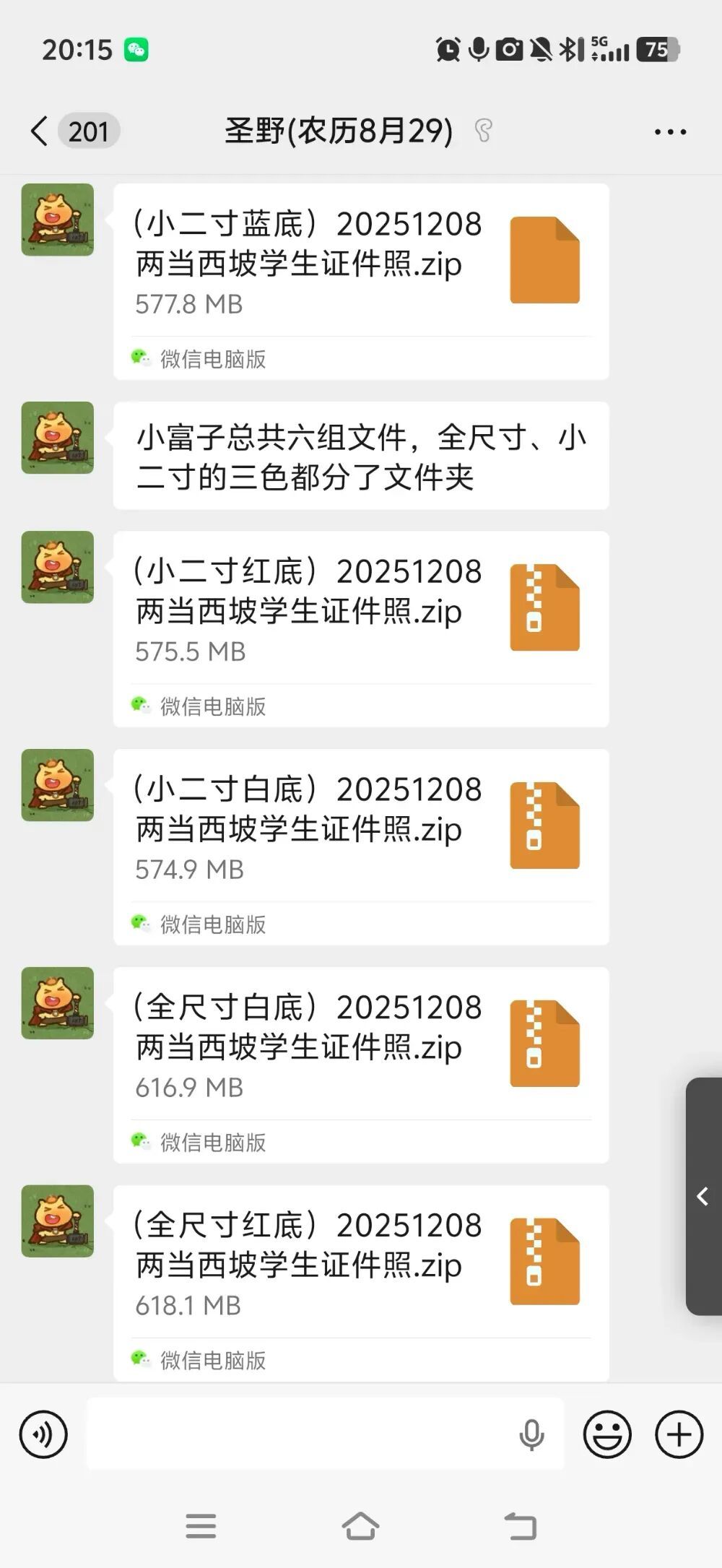 图为梁圣野将六组证件照的压缩包发给陈明富