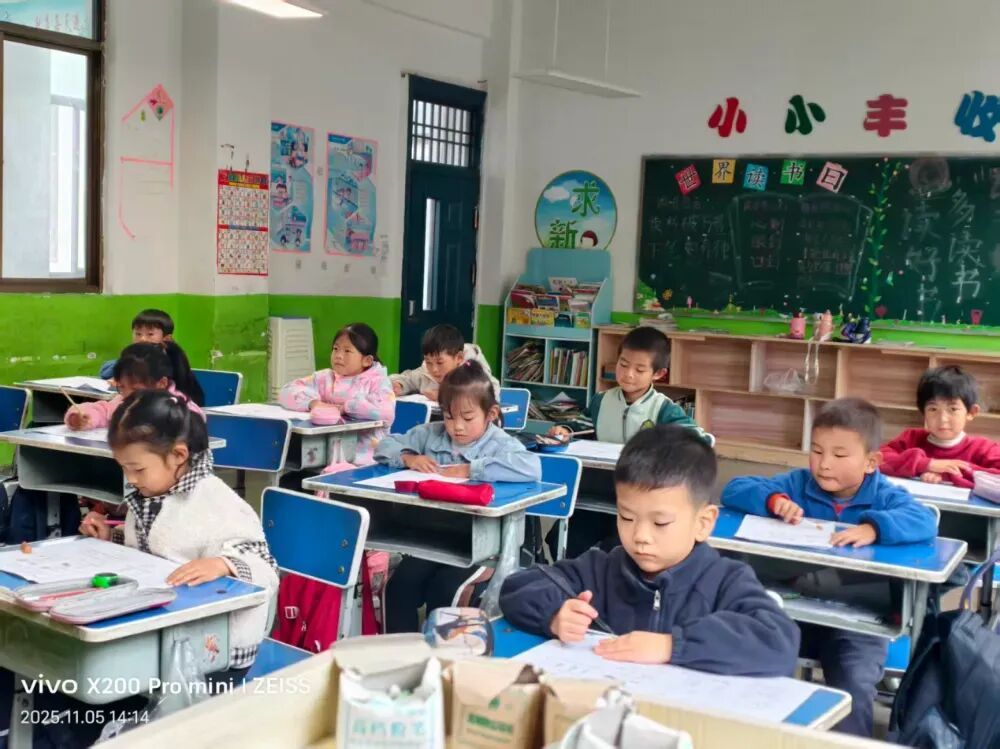 图为西坡学校的孩子们在认真学习