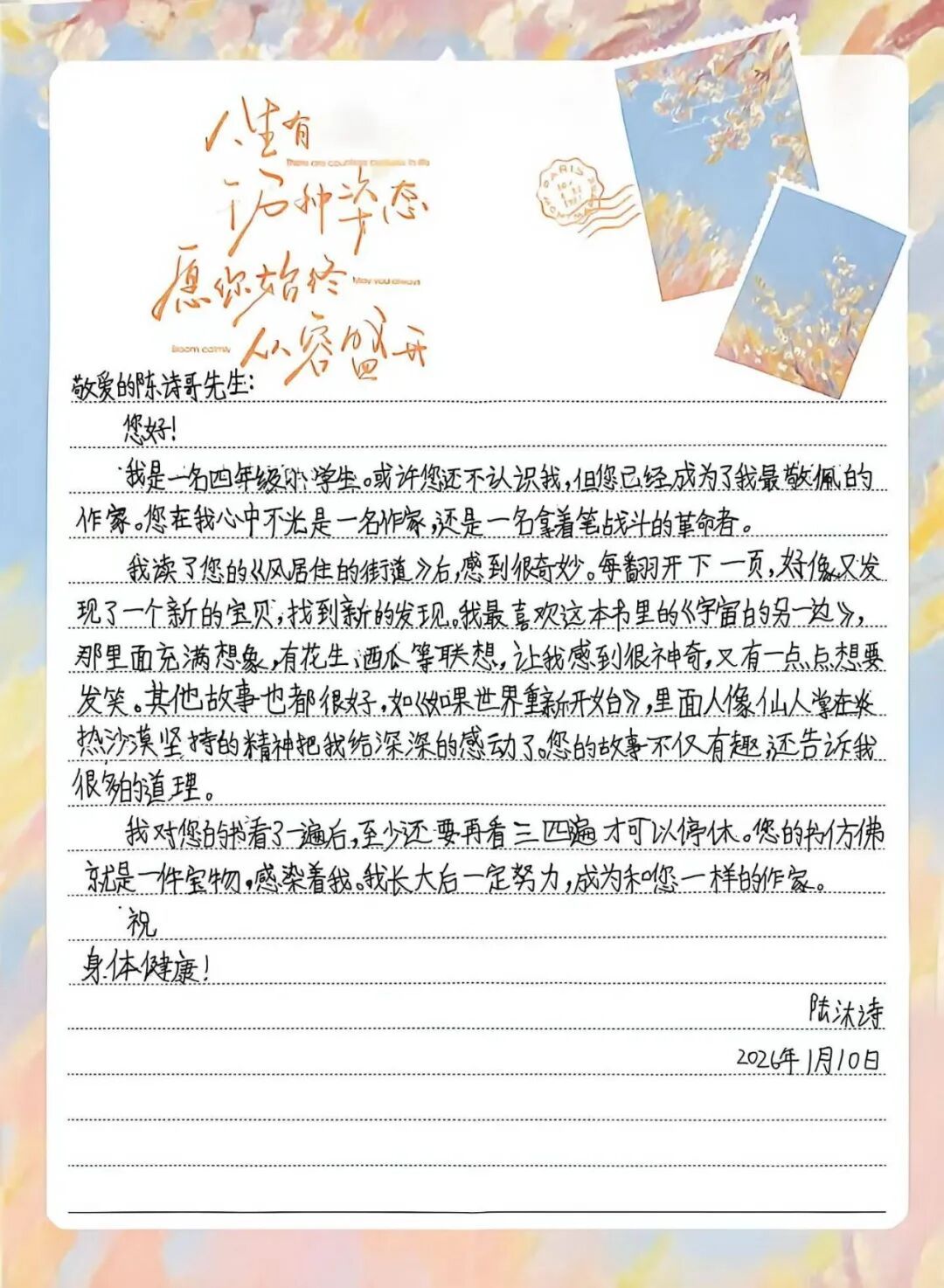 陈诗哥给孩子们的回信