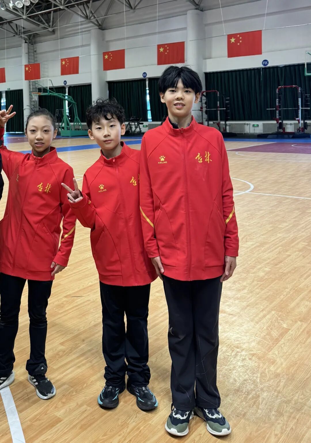 长春花样滑冰队的王柯迪、张峻铭和李泽熙在热身时,结交了来自北京、山东、黑龙江、重庆、澳门等地的众多新朋友。大家在空闲的篮球馆里一起投篮,切磋球技。