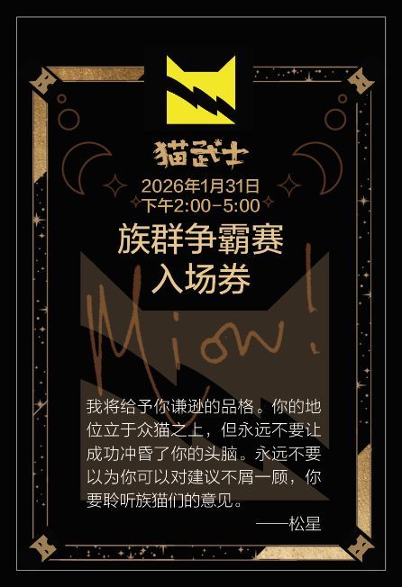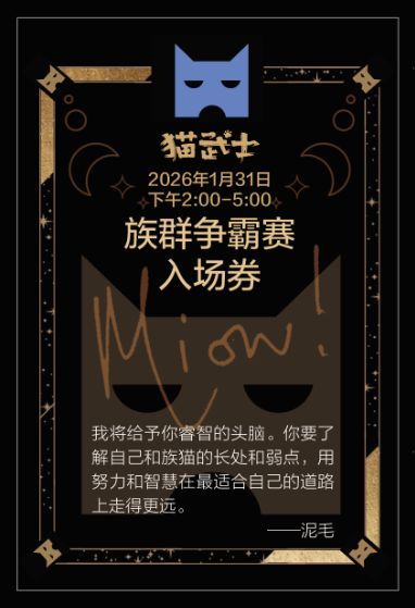 “猫武士族群争霸赛”不仅是一场粉丝聚会,更是一次对猫武士的精神共鸣与集体致敬。活动通过创意互动与情感链接,让每一位参与者在欢笑与思考中,进一步融入猫武士的世界。