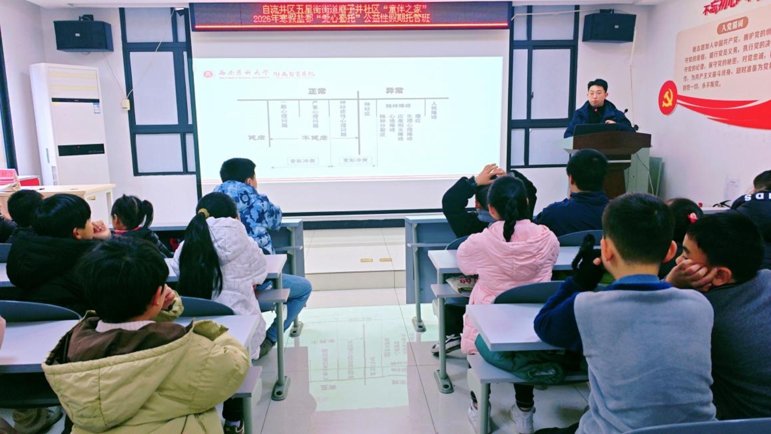 寒假期间,在自贡市各社区的“童伴之家”,心理健康互动课堂成为孩子们的“心灵港湾”。孩子们在专业心理治疗师的引导下,通过“心理绘画”“情绪卡片配对”等互动游戏活动,在轻松的氛围中学会识别负面情绪,掌握自我情绪管理、心理疏导的方法,为孩子们的心灵撑起“保护伞”。