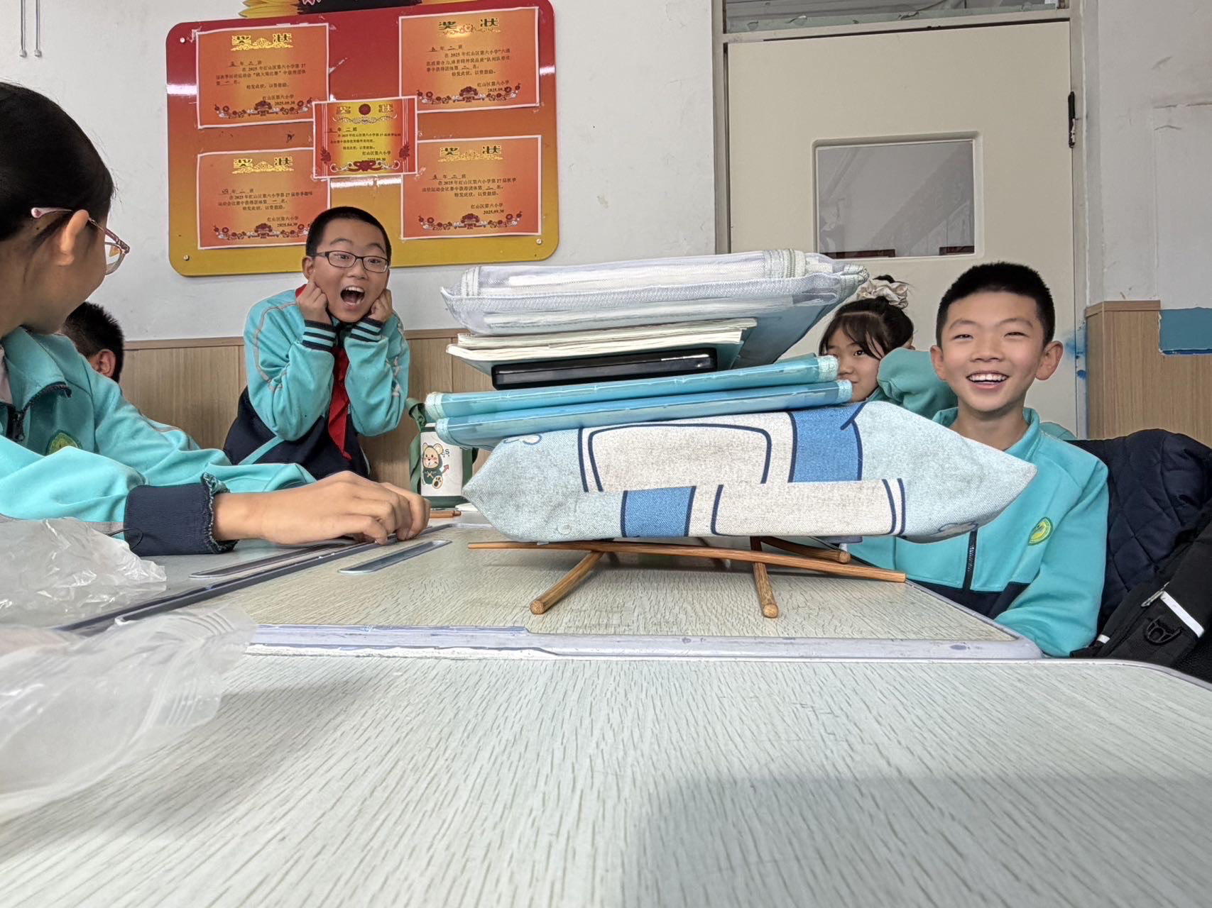 “你们看!它能稳稳承重这么多本书!”在红山区第六小学的“科技节”上,一名五年级学生自豪地展示着自己的作品——用10根筷子搭建的“泸定桥”模型。他说,一想到革命先烈当年飞夺泸定桥的艰险,就深深敬佩他们的无畏与坚韧。而这个小小的模型,恰是红山区思政教育“四色课程+”品牌体系在学校落地生根的生动缩影。