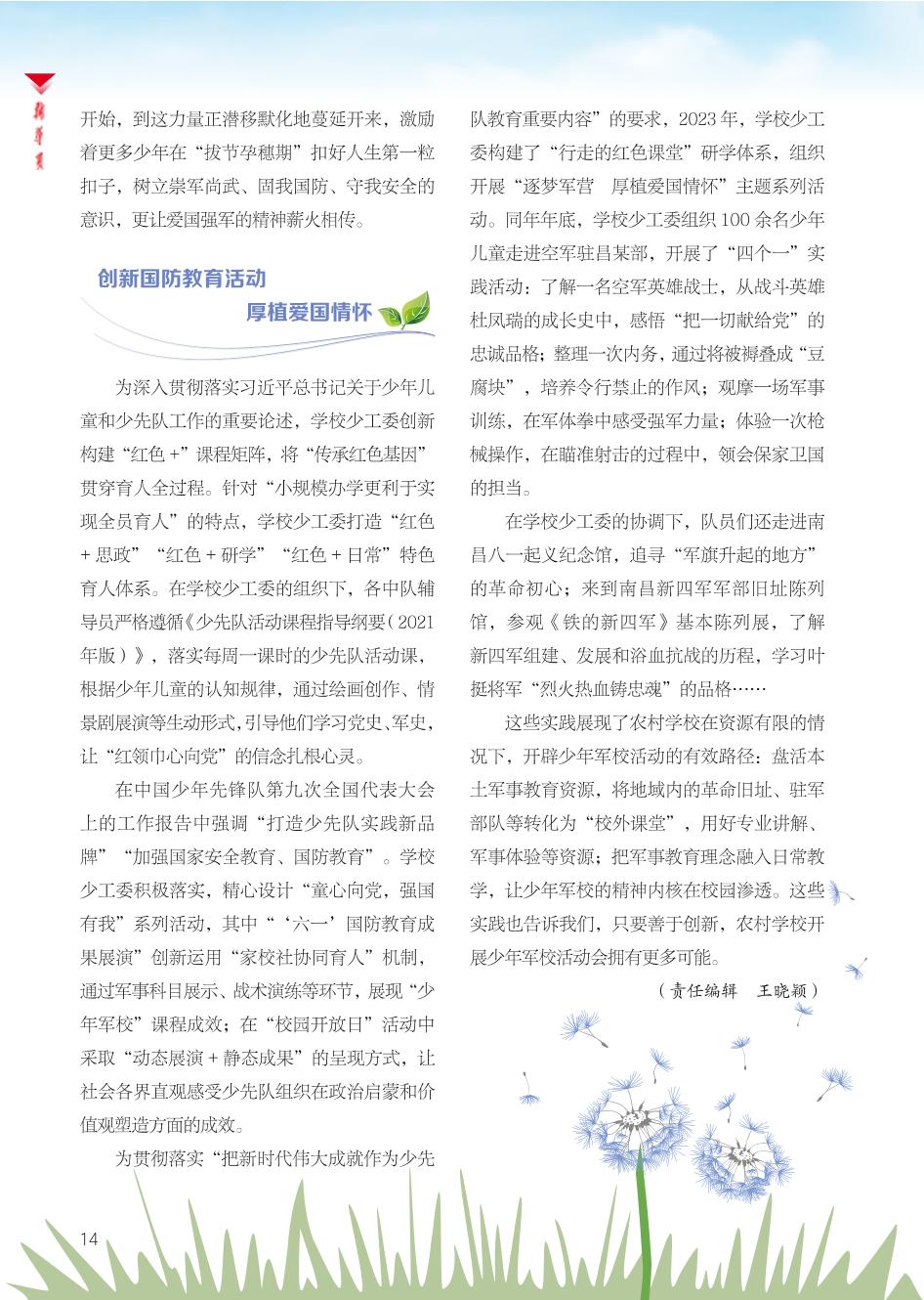 这是一篇小切口、大主题的深度调查报道,以“驻校蹲点”姿态剖析农村学校实施新征程少先队“壮苗”工程、落实“红领巾爱国防”计划的破局之道。记者深入挖掘“盘活本土红色资源”的可复制模式,回答农村红色教育“不流于形式”的时代之问。报道主题鲜明,兼具政策高度、新闻锐度与民生温度,对全国同类地区具有示范价值,是新闻工作者增强四力的成果,符合关于“围绕重大议题、发展课题展开深入报道”的评选标准。