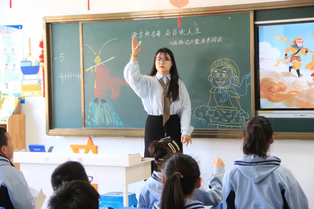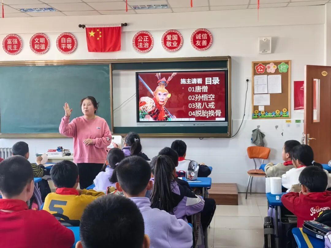 培训结束后,五年级(4) 班杨丽圆老师为全体语文教师带来了一节精彩的整本书阅读分享课。 杨老师以经典名著《西游记》为例,巧妙引导,带领同学们品读文本、分享感悟。 课堂上,同学们踊跃发言,畅谈自己对书中人物的理解,在思维的碰撞中感受经典的魅力。